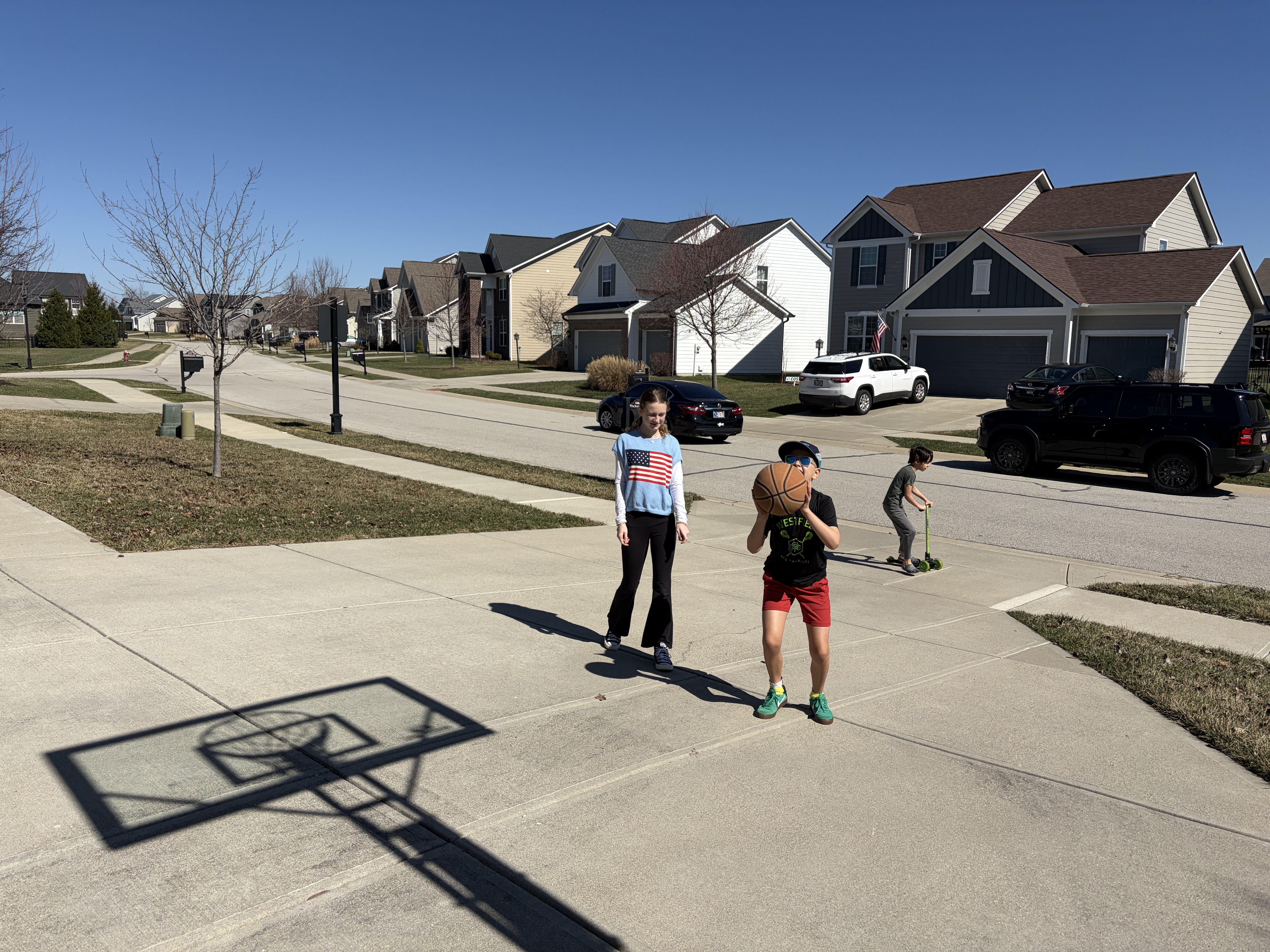 As I was typing this up Noah’s cousin also arrived so I guess he is at least hanging out with some visitors. It’s another beautiful day so time to sign off, get outside, run around, and shoot some more hoops. We love you all and over and out.
