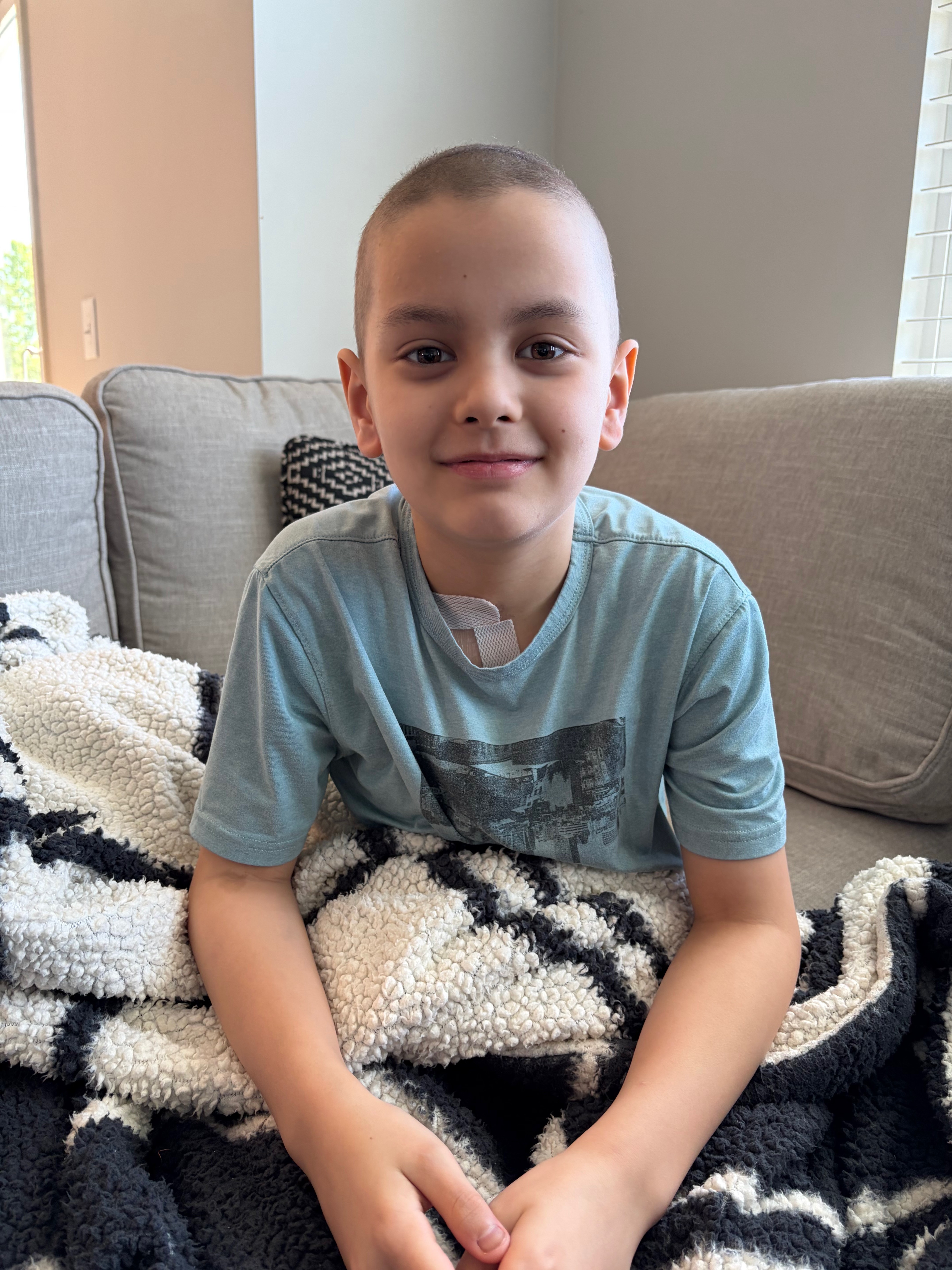 Clinically, Noah looks great. He’s got good energy. We played something resembling 1-on-1 last night, and I think I tired more quickly than he did — even if that’s an ever-lowering bar these days. Typically, we see him at his baldest at this point after a round, but this time his hair is growing back. I think it’s likely that’s just because the second chemo med worked via a different mechanism than in the other rounds. At any rate, he’s growing some hair. It’s super soft; we’ve heard of this “chemo hair,” and it’s really hard to avoid petting his head at the moment.
