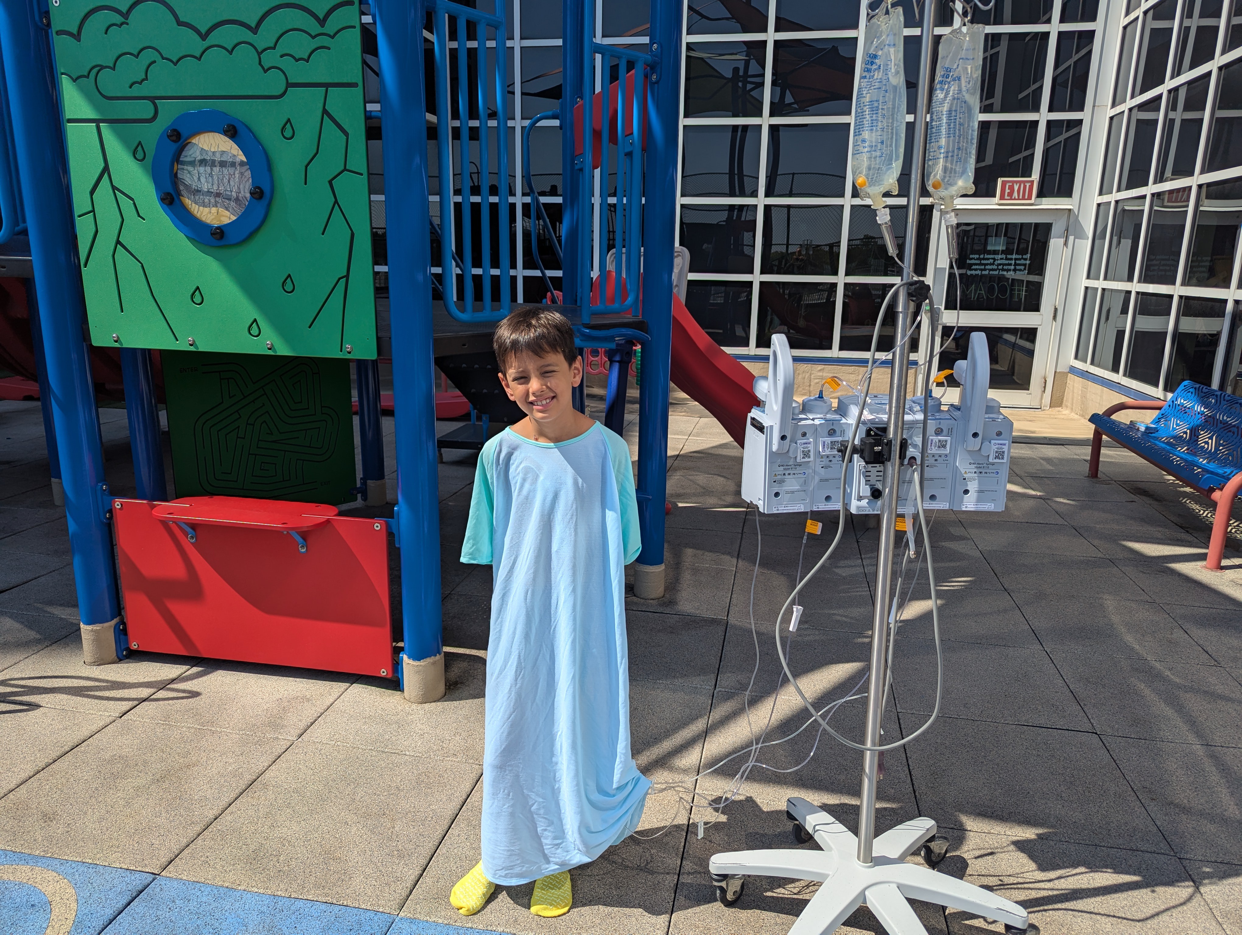 Today Noah had another day without a fever and I’d say it was a “good day”. We played some board games and watched some sports. Since it was a quiet Saturday and Noah’s counts are still up, the doctor allowed him to walk outside the room and even to the “outside outside” in the rooftop park. It could easily be another 20 days until he gets outside the room so was a welcome escape.