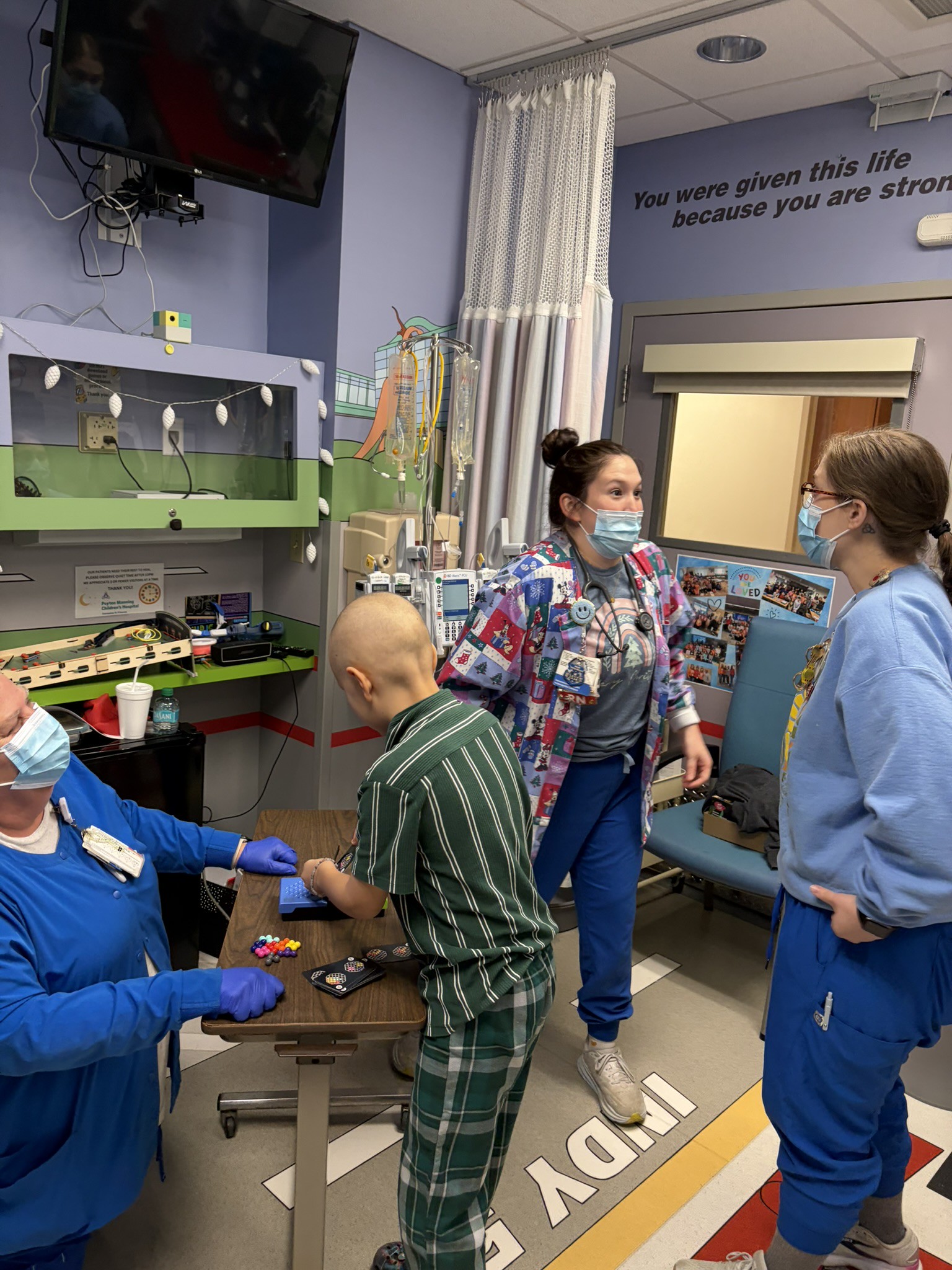 I also wrote quite a bit about the facilities saga in the Christmas post. For a couple weeks there our rooms and the facility just kept breaking in new and interesting ways. It did get to the point where we started talking to a couple other large hospitals to decide whether we needed to move there for rounds 4 and 5. We weighed the pros and cons and ultimately decided facilities were not a good enough reason to leave, especially given we’re through three rounds, Noah does not want to leave, and we don’t really have criticism of the care and competency. The morning we made the decision to stay, the heat in our room cranked up and the thermostat stopped working. We sat there sweating and almost laughing at the situation. Later that day I needed to make a trip home and the elevator arrived with the floor about 6 inches above flush. I took the other elevator, reported the issue, shrugged and just said to myself, “okay, we’re gonna roll with this”.